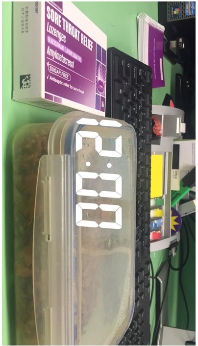 12:00pm- Lunch time! In my lab 12 o’clock is usually lunch time when we all sit down and have a chat (surprisingly not talking about science too much!). I always bring my own lunch, this time I am having wild rice paella with coconut milk (delicious!!!). I noticed that bringing your own lunch everyday safes an absolute fortune, plus you can keep track of what you putting in your body. Unfortunately, I have a bit of cold so little snack for me sore throat tablets